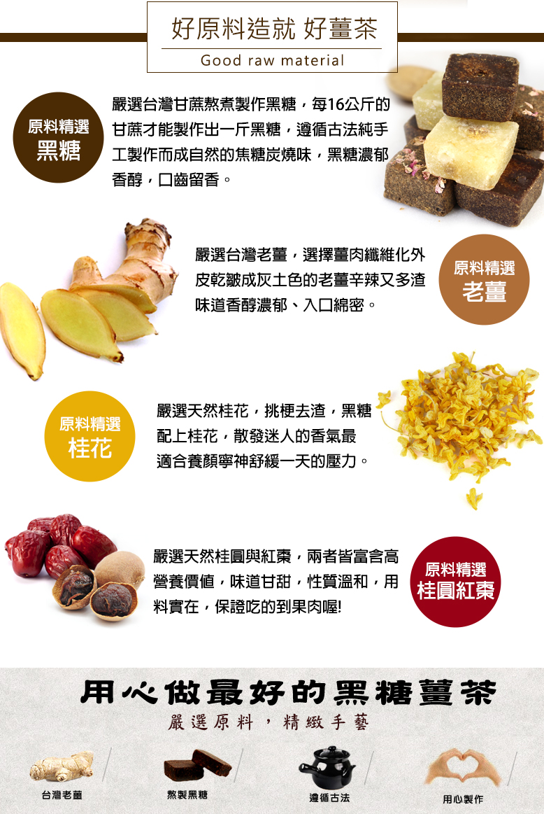 嚴選台灣老薑製作,真材實料,黑糖養生,口感純正濃厚,暖身,飲用保身心舒暢